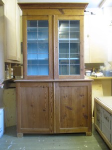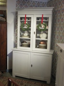 Vitriini/kirjakaappi on 1800-luvun alusta. Kaappi on jo aiemmin kunnostettu 1980-luvulla. Tällöin (jäämien perusteella) kaapista on poistettu useita maalikerroksia (7 kerrosta). Sen jälkeen pinta on vahakäsitelty. Lyijylasityö ei ole alkuperäinen, se on tehty varmaankin edellisen kunnostuksen yhteydessä.