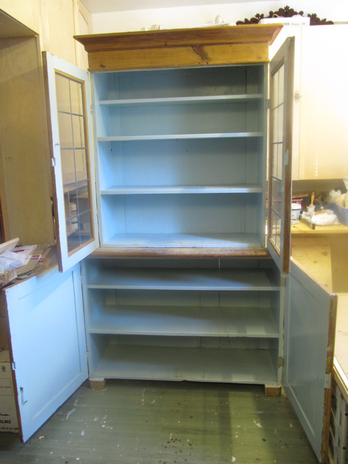 Kaappi on maalattu jossainvaiheessa vaaleansiniseksi sisältä.