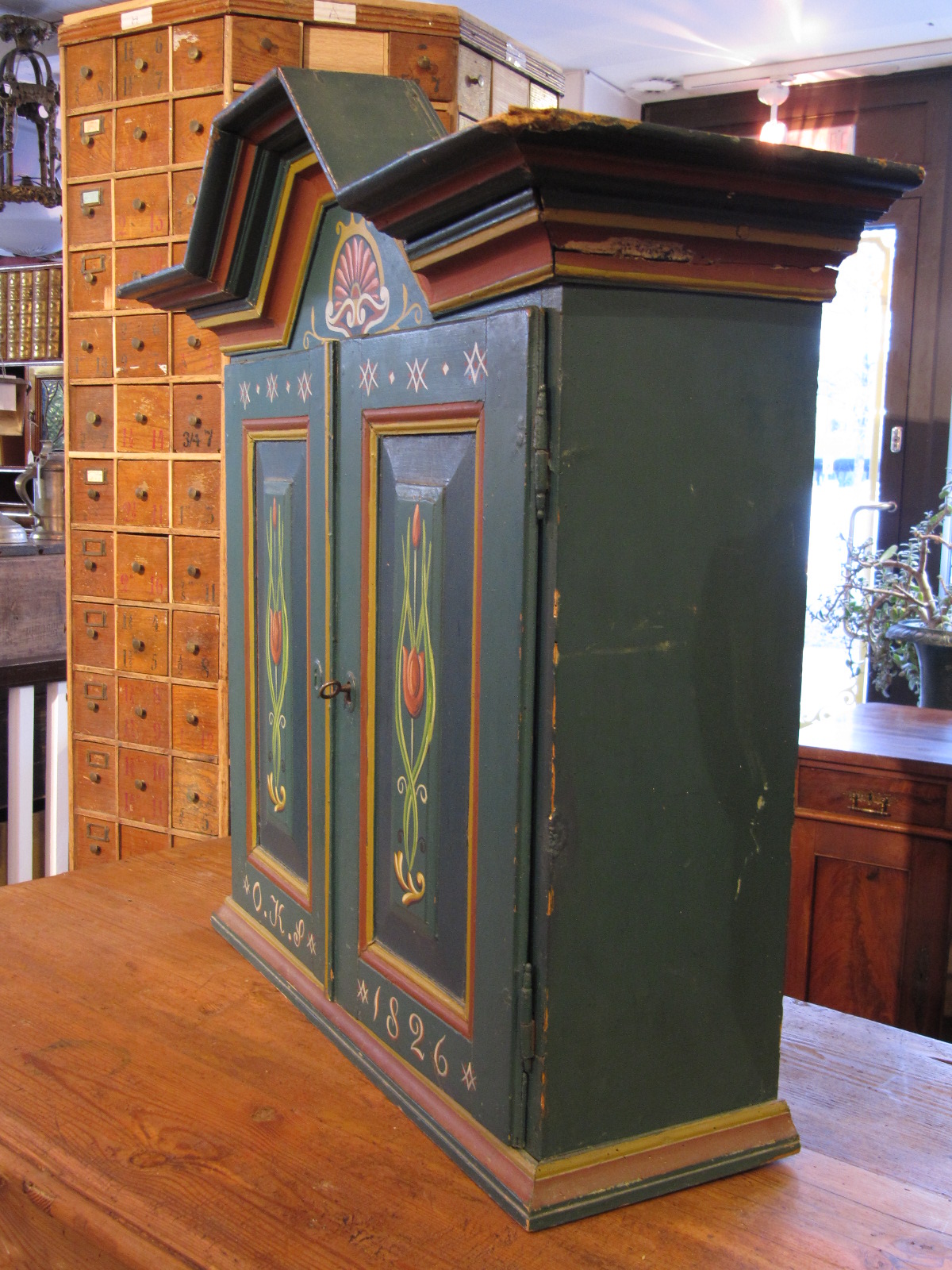 Talonpoikainen kabinettikaappi on nyt valmiina liikkeessämme antiikkiliike Wanhassa Wiljamissa.
