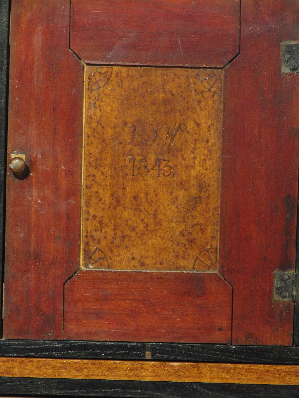 Talonpoikaiskaapin uudelleen maalattavat pinnat pohjustin sellakalla. Sellakkana käytin itse sekoittamaani oranssia sellakkaa (aiempi blogi-julkaisu Sellakan valmistaminen).