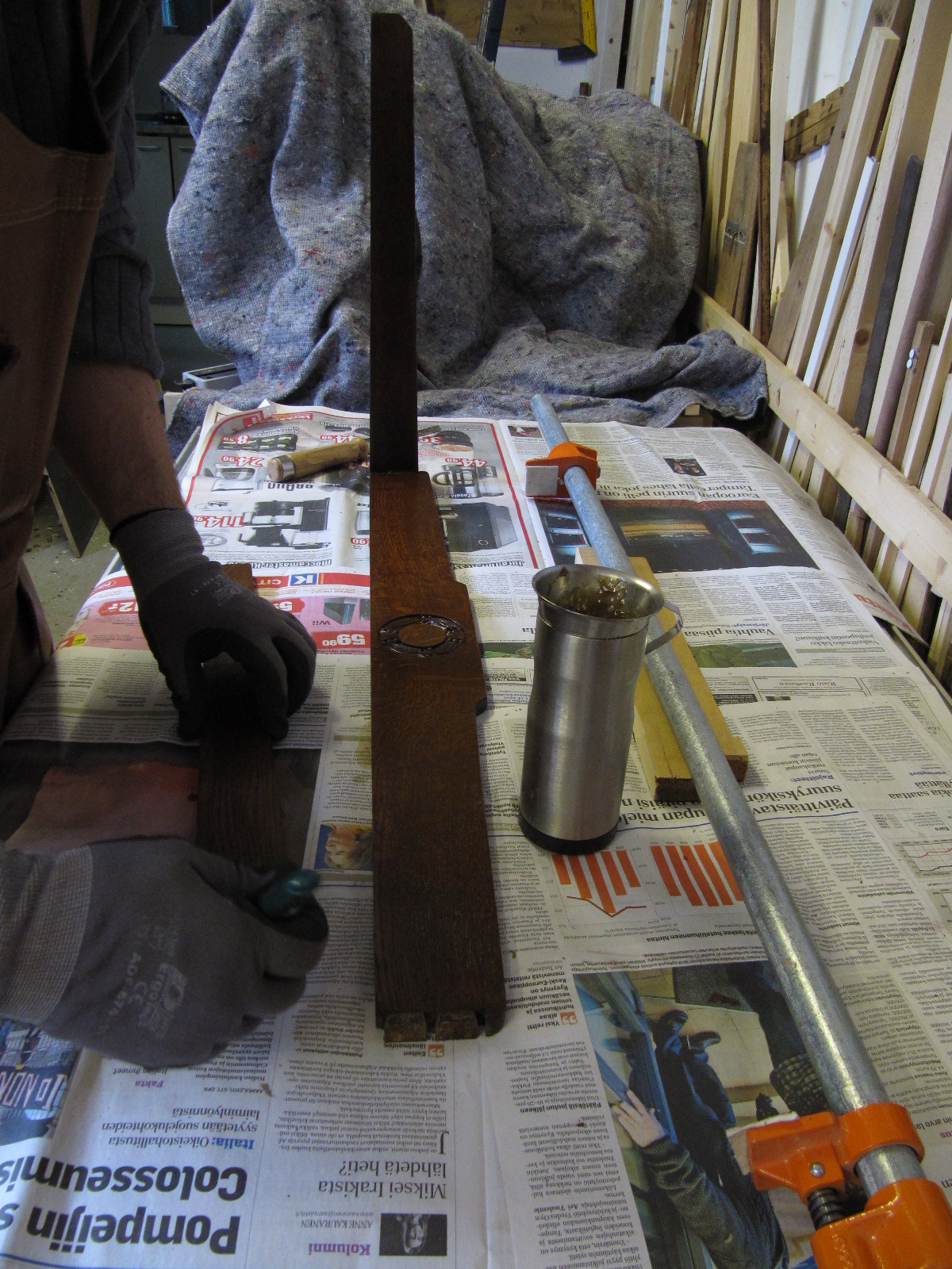 Kaiteen osat puristettiin yhteen. Annoin osien olla puristuksessa noin kolme tuntia.
