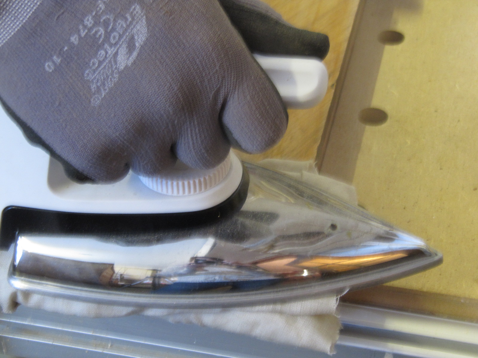 Laitoin vaurioituneen kohdan päälle kostean kankaan ja lämmitin sitä silitysraudalla.
