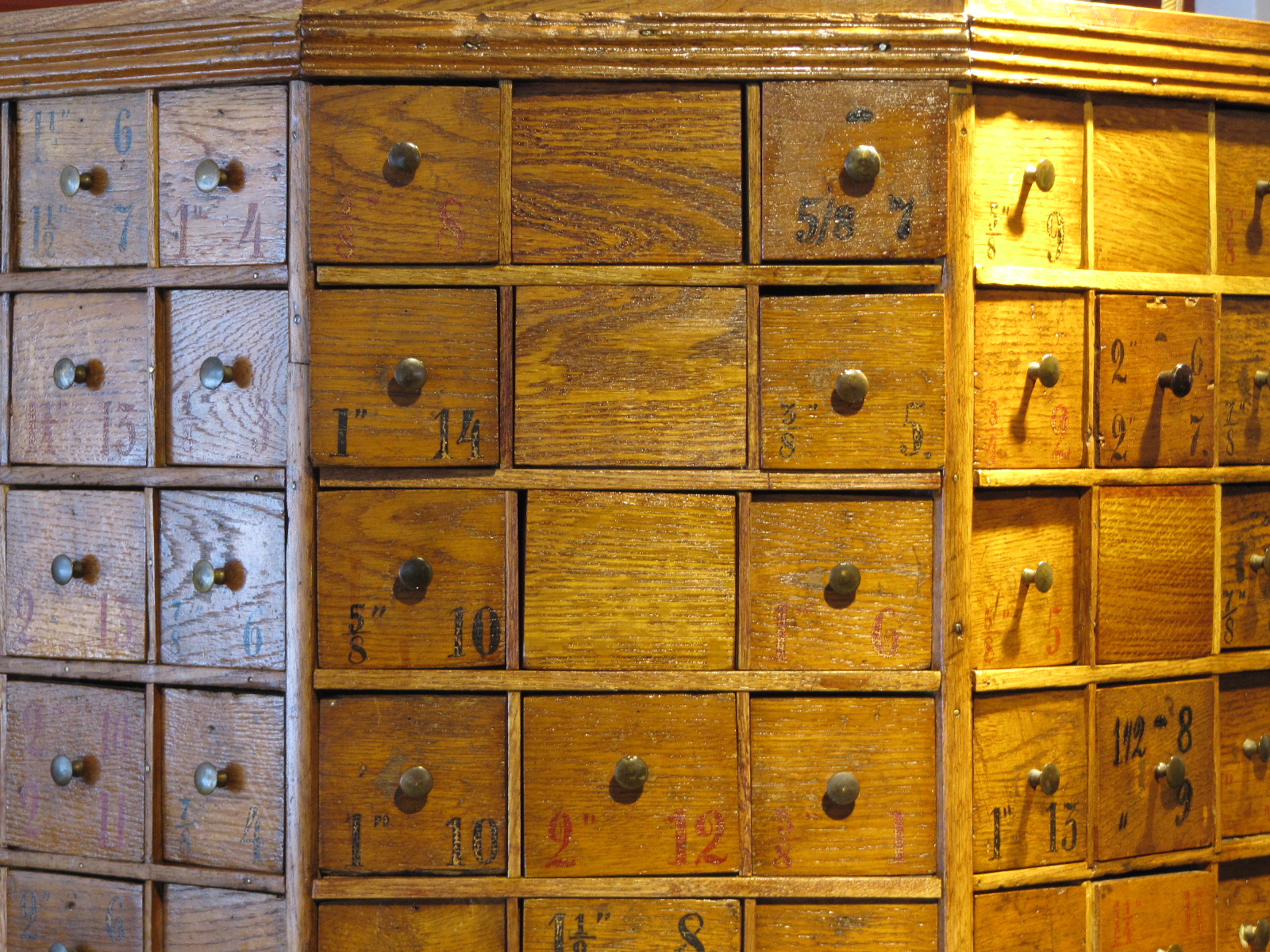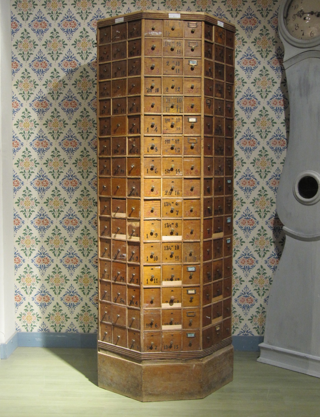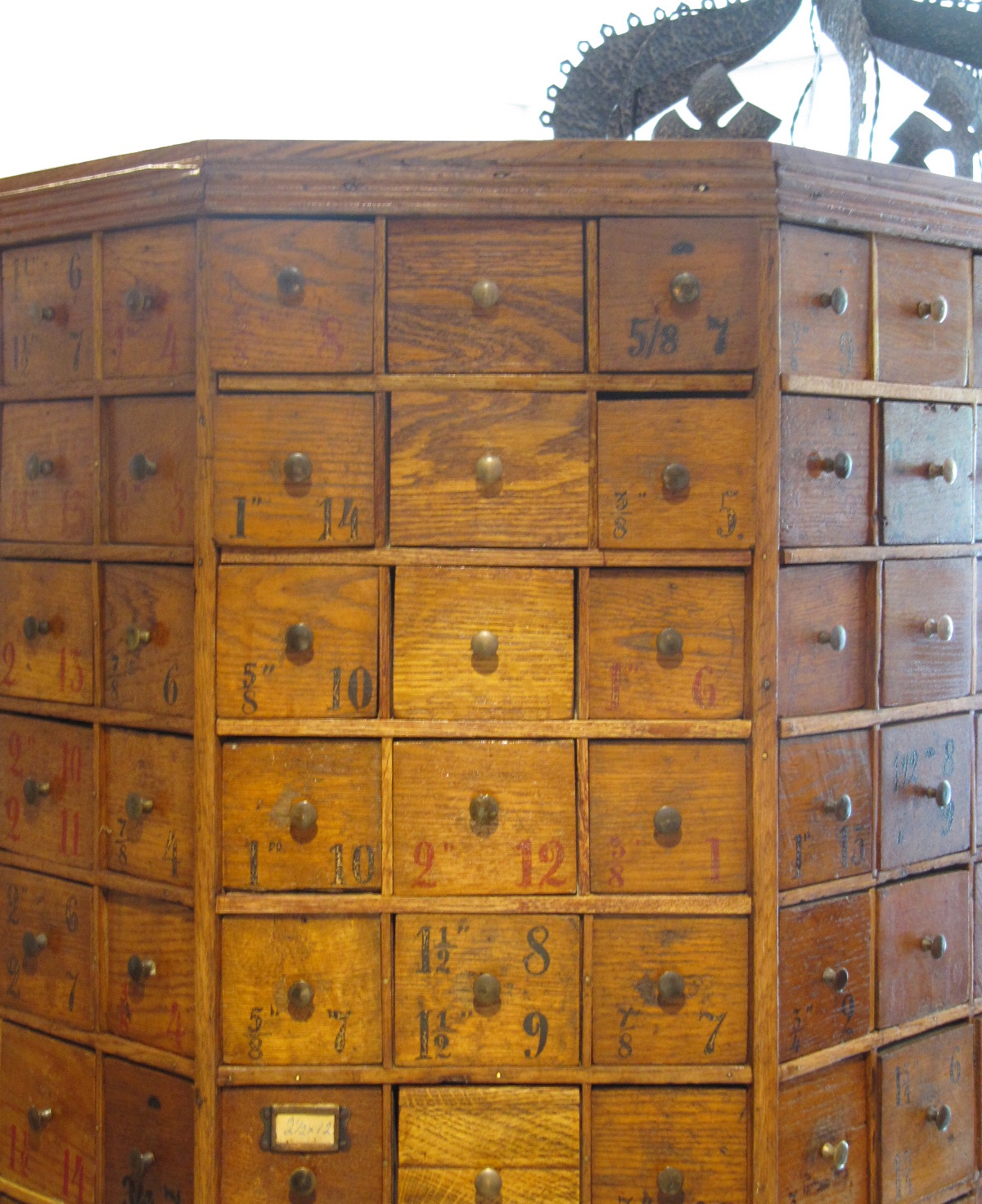 Vuosia sitten tein vaihtokaupat Maalahtelaisen keräilijän kanssa 1900-luvun alussa tehdystä rautakaupan ruuvilokerikosta. Tarkoituksena oli ottaa lokerikko käyttöön myymälässämme. Lokerot olivat tähän tarkoitukseeen kuitenkin liian pienet, joten päätin myydä sen. Muutamia ehostuksia täytyi kuitenkin tehdä.
