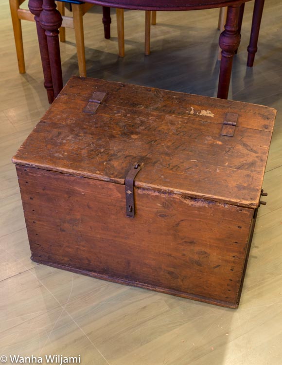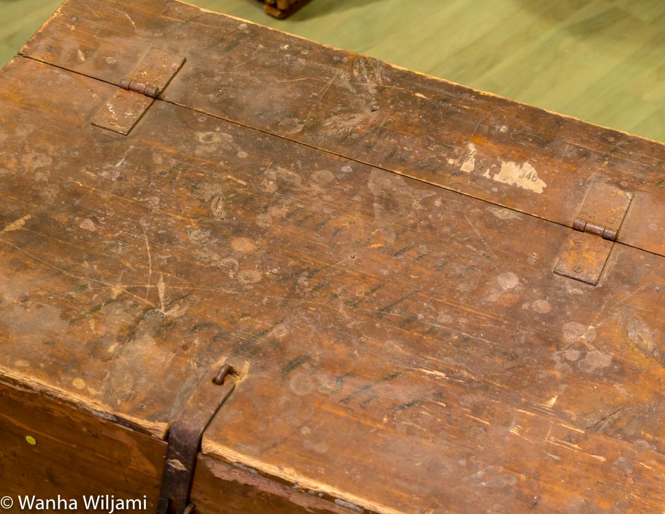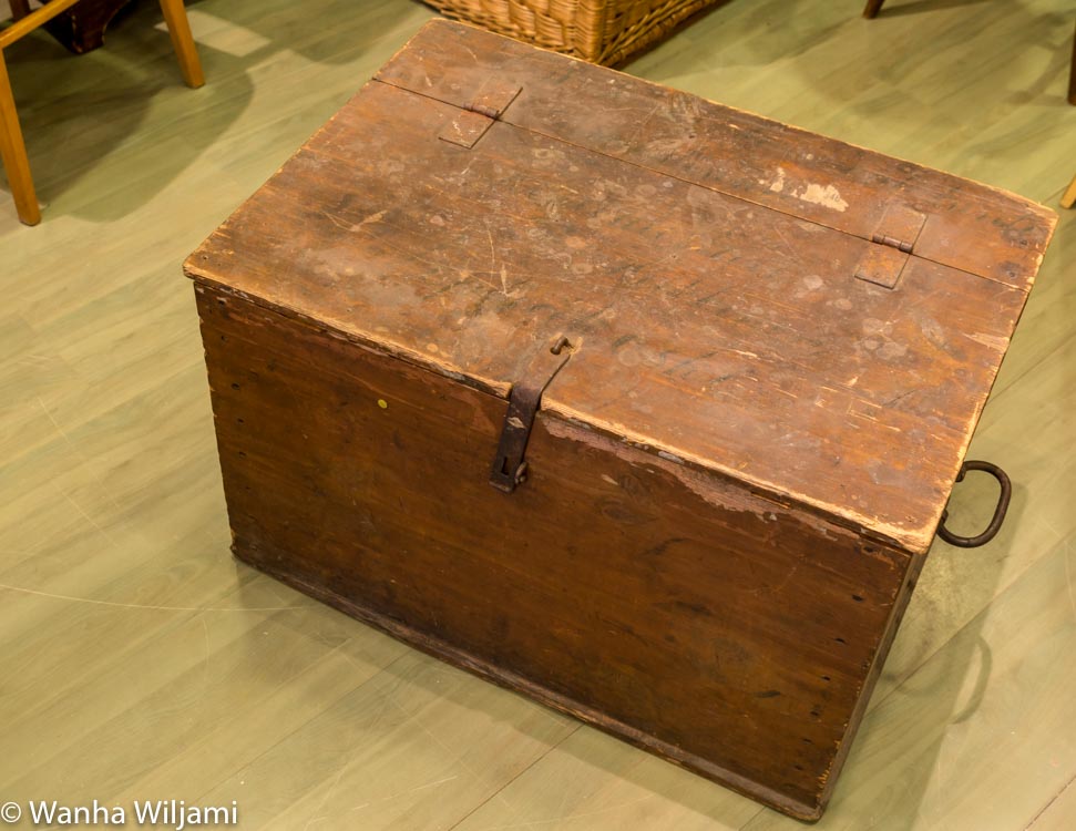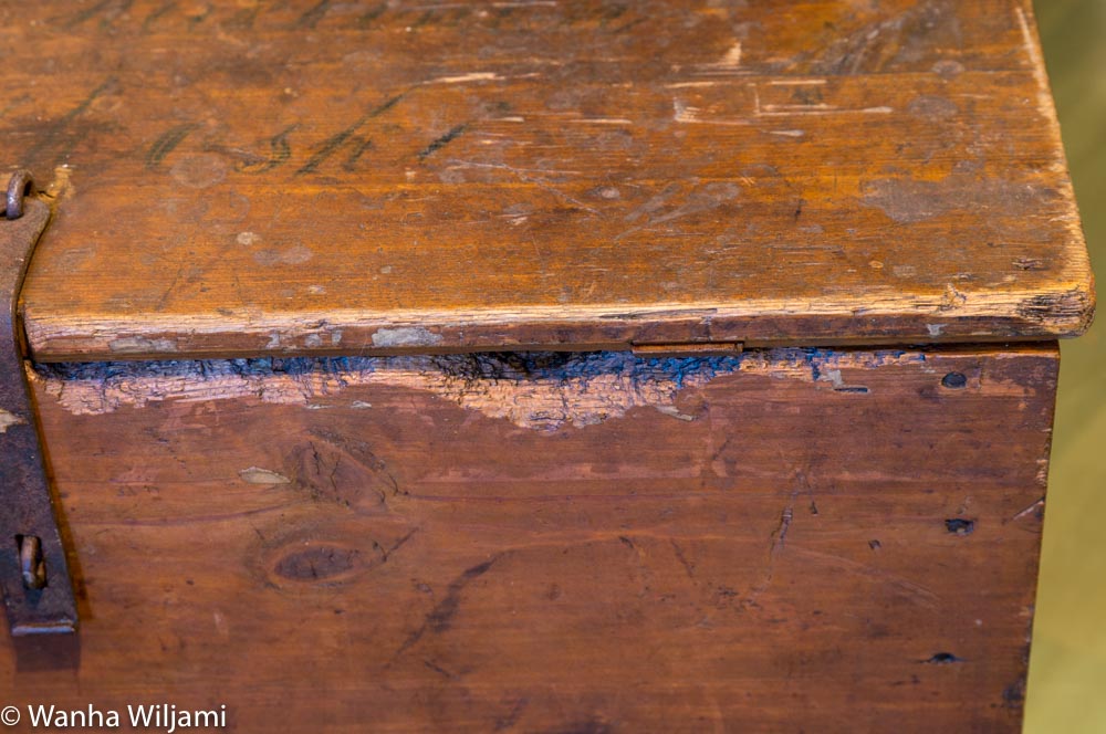 Arkku on tehty 1800-luvun lopussa. Maalipinta on alkuperäinen. Myös arkun kahvat, saranat ja salpa ovat alkuperäisiä. Kannessa on kirjoitusta jota en ole pystynyt selvittämään. Arkku on hyvin tukeva, joten se ei vaadi liimaamista.