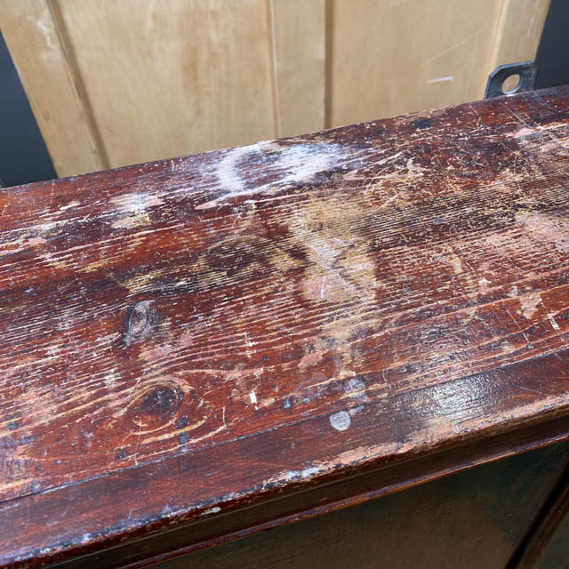 Renginkaappi, jonka ostin, on tehty 1900-luvun alussa. Edellinen omistaja oli jo kunnostanut kaapin, mutta kun se tuli minulle, sen pinnalla oli paljon vesijälkiä ja muuta kulumista. Aluksi ajattelin, että joudun poistamaan vanhan käsittelyn siklillä ja hiomaan pinnan, jotta voisin laittaa uuden värin. Kuitenkin päätin kokeilla vähemmän työlästä vaihtoehtoa: Restaurointiöljyä ja teräsvillaa, josko jäljet lähtisivät pois ilman suurempaa remonttia.
